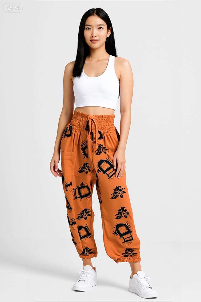 Ethnic Lombok-inspired jogger pants featuring elastic waistband and adjustable drawstring for maximum comfort. Blending traditional motifs with a modern silhouette, perfect for relaxed yet stylish looks.