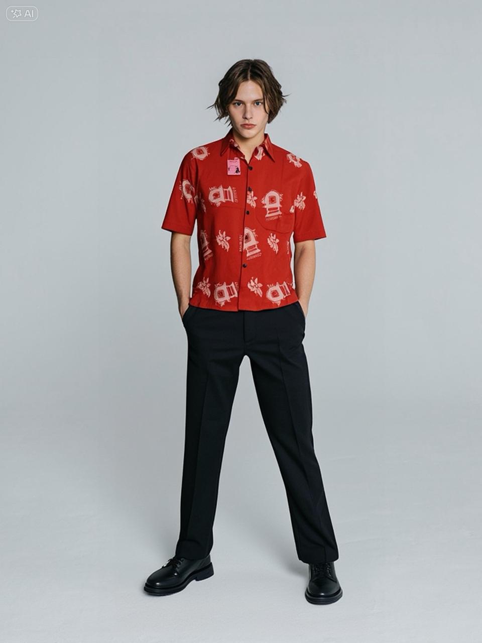 A short-sleeve ethnic Lombok patterned shirt with a modern cut and clean silhouette. Ideal for casual to semi-formal occasions, offering a refined cultural touch with contemporary style.