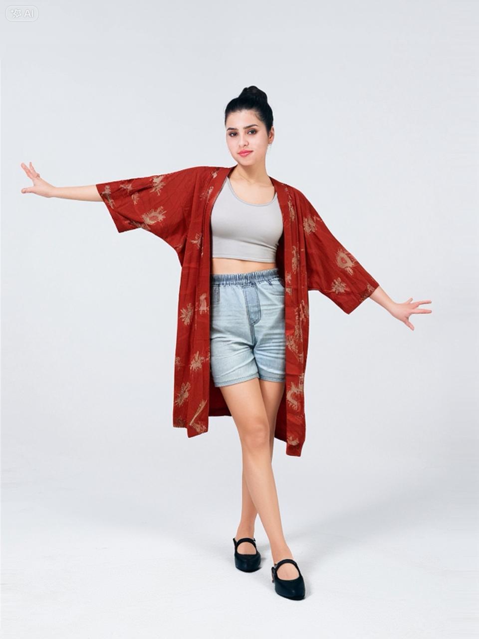 A lightweight ethnic Lombok kimono outer with a relaxed and flowing silhouette. Adds a unique statement to casual or resort outfits and pairs perfectly with simple innerwear.