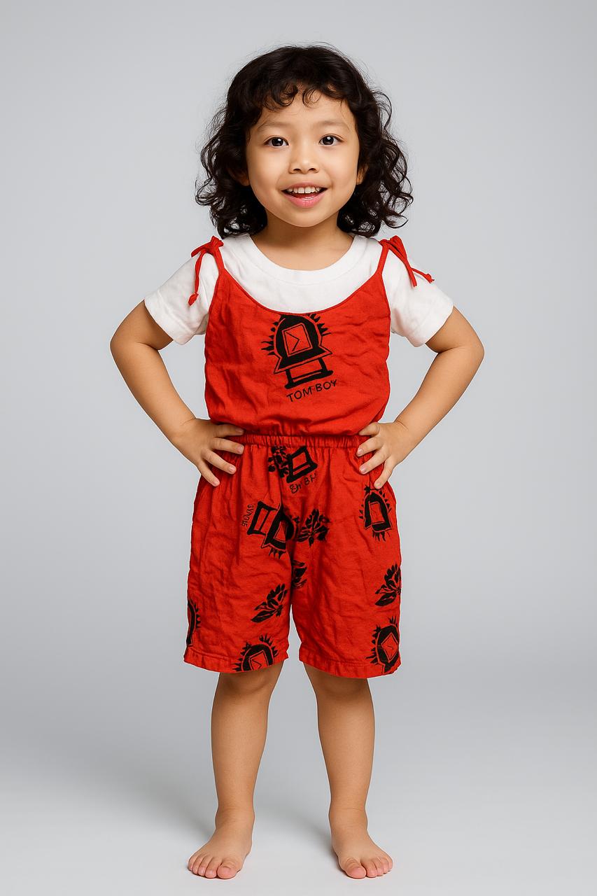 A cheerful and comfortable kids’ jumpsuit adorned with playful ethnic-inspired prints. Designed to allow freedom of movement, this outfit is perfect for daily wear while still showcasing a touch of cultural charm. Soft fabric and a relaxed fit ensure all-day comfort for active little ones.